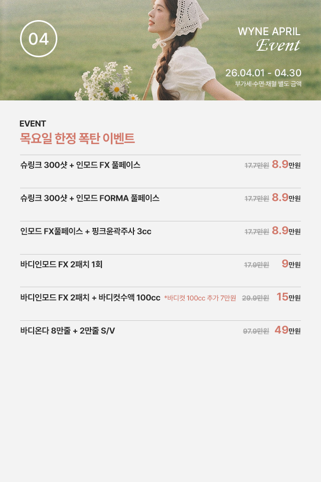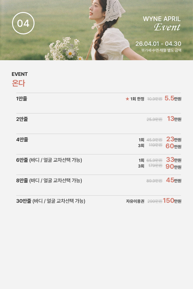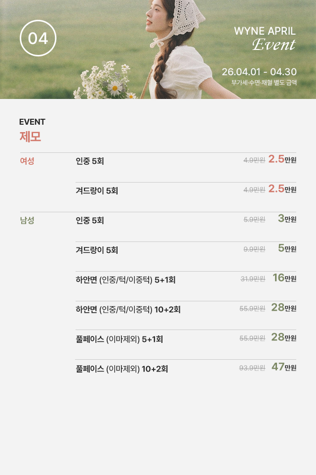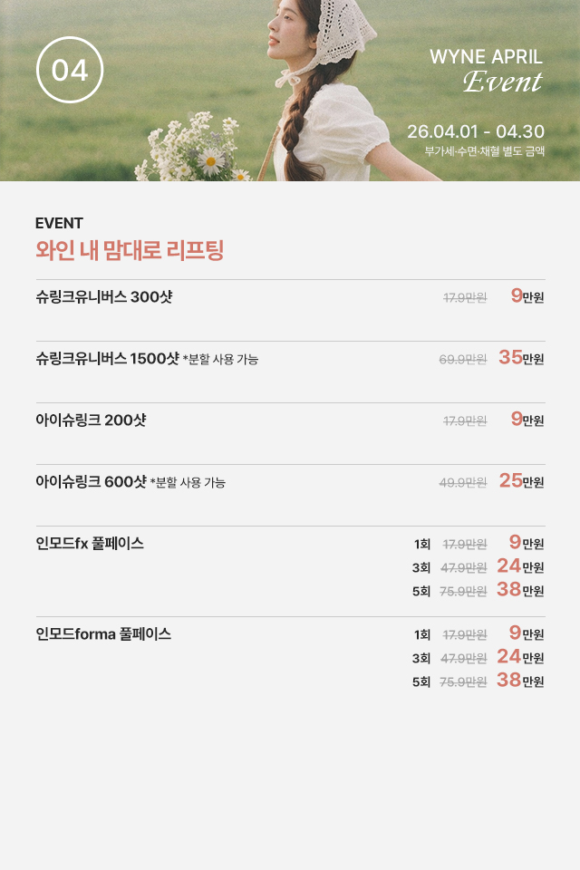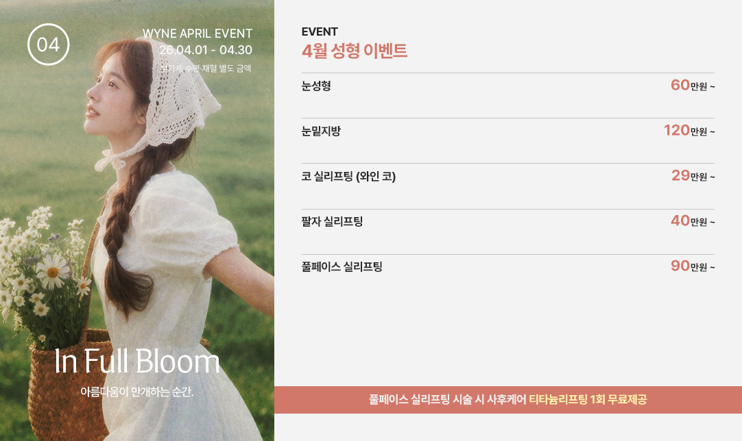이벤트 WYNE EVENT 2026-03-31 4월 이벤트2026-02-27 3월 이벤트2026-01-30 2월 이벤트2025-12-31 1월 이벤트2025-11-29 12월 이벤트
