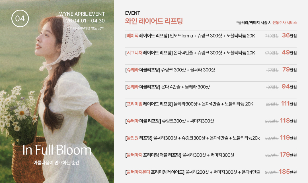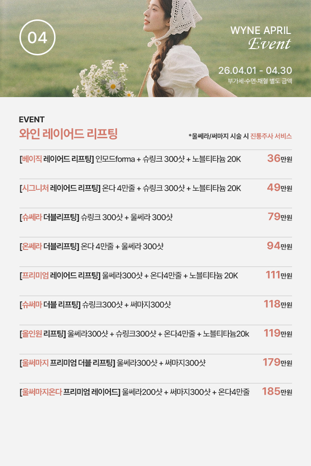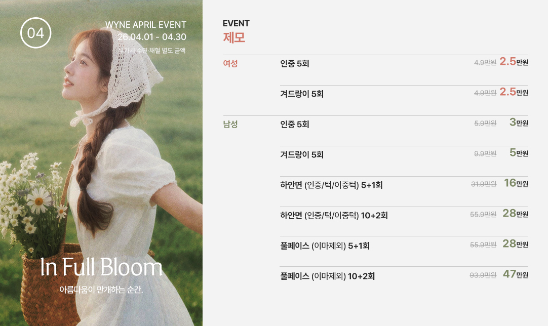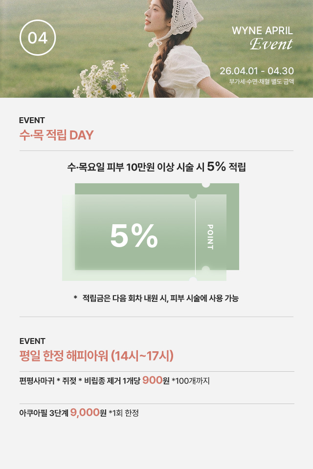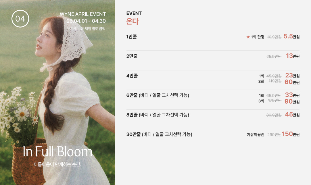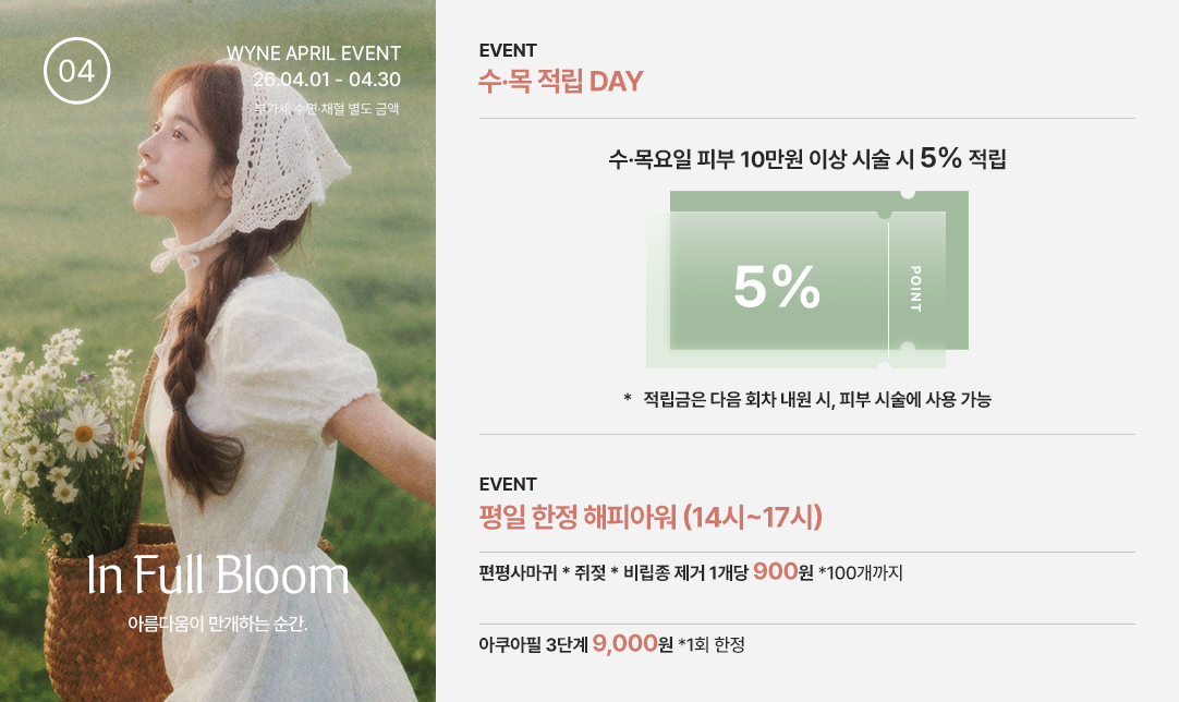 이벤트 WYNE EVENT 2026-03-31 4월 이벤트2026-02-27 3월 이벤트2026-01-30 2월 이벤트2025-12-31 1월 이벤트2025-11-29 12월 이벤트